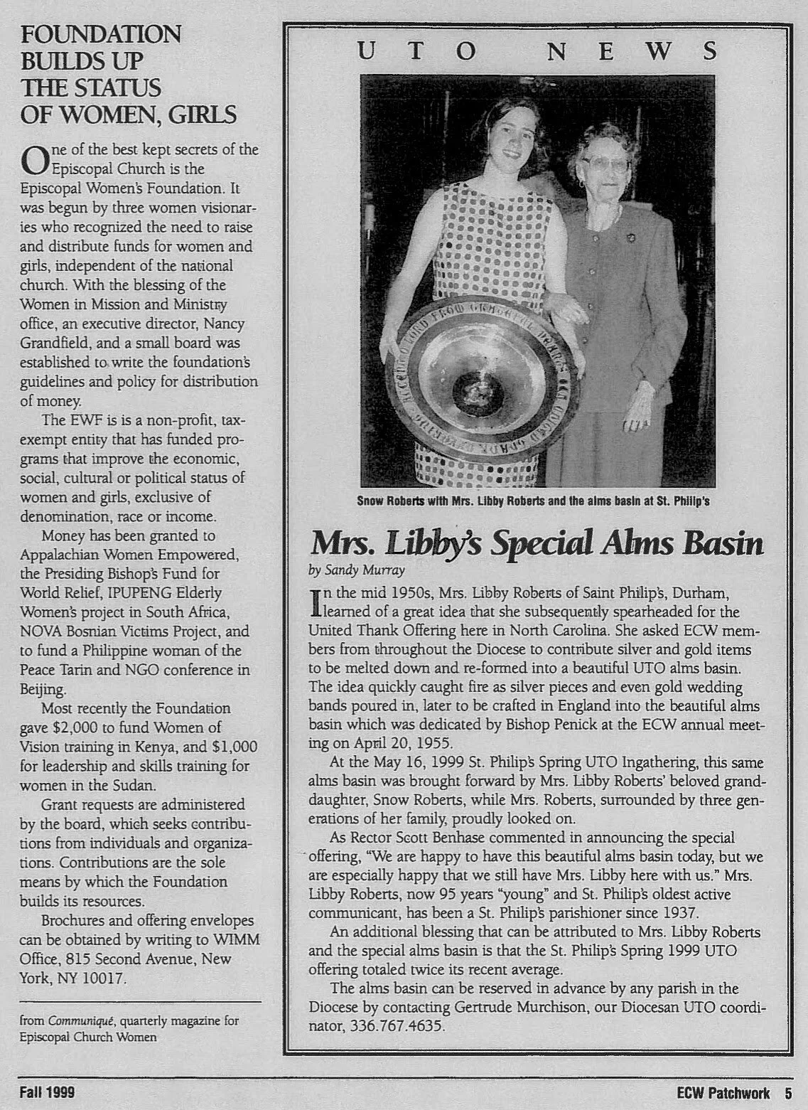 ECW-NC August 6, 2015 Silver & gold from women of the diocese create a unique alms basin ECW-NC August 6, 2015 View fullsize